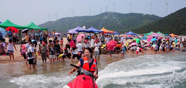 的海邊卻是清風(fēng)習(xí)習(xí),一派清涼,成為人們向往的避暑勝地。進(jìn)入7月份,長(zhǎng)島迎來旅游旺季,每天景區(qū)接待游客近2萬人次,7日更是達(dá)到3.8萬人次,單日旅游門票收入超過百萬元。