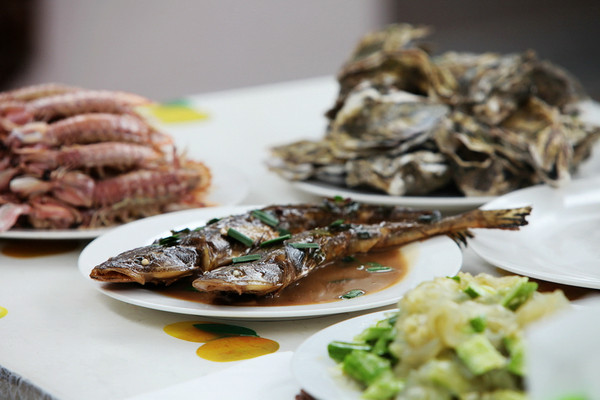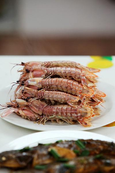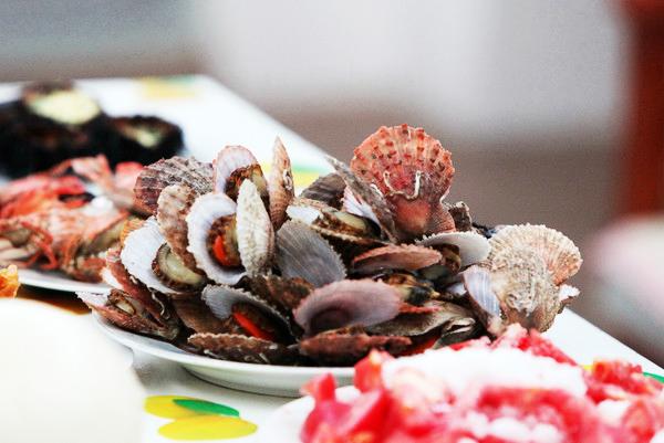 5點回到長島港口,帥哥張濤已經(jīng)在等候我們了,很快回到仙境漁家,晚上的海鮮大餐也在等我們了