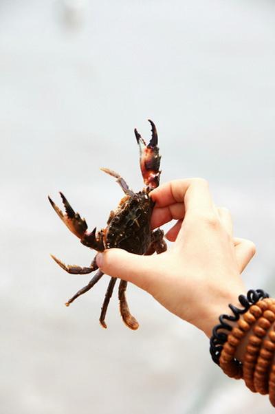 把行李放下,我們到離住處不遠(yuǎn)的海邊先溜達(dá)溜達(dá)。這個海灘是個扇貝初加工的地方,不太干凈,但吸引了很多海鷗和螃蟹前來覓食。
