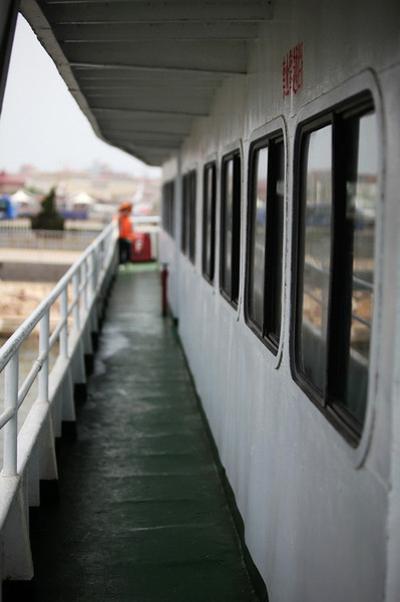 上平臺后,我倆在船尾的把角樓梯口邊上占了個地方,這里只能待2個人,把樓梯柵欄一關(guān)就變成個獨立的小空間了,一會兒不會受其他人影響了。