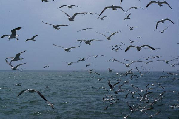 鳥島的海鷗,特別多,始終跟在我們船邊,大家都在用方便面喂它們。海鷗喜歡吃方便面,真是重口味哦~~