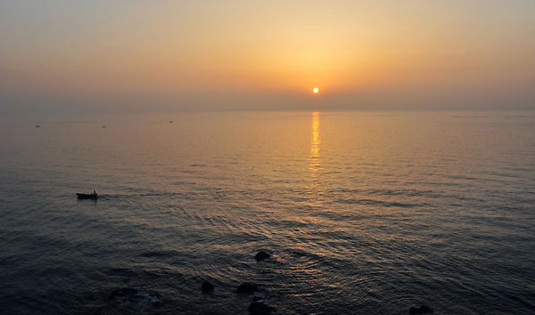 第二天早上早早爬起來(lái),到漁家樂(lè)后山的觀景臺(tái)上看日出。比我起得早的是漁夫,小船已經(jīng)在日頭尚未跳出海面的晨曦中漂向了遠(yuǎn)方,我們吃的美味,就是來(lái)自他們的起早貪黑吧。