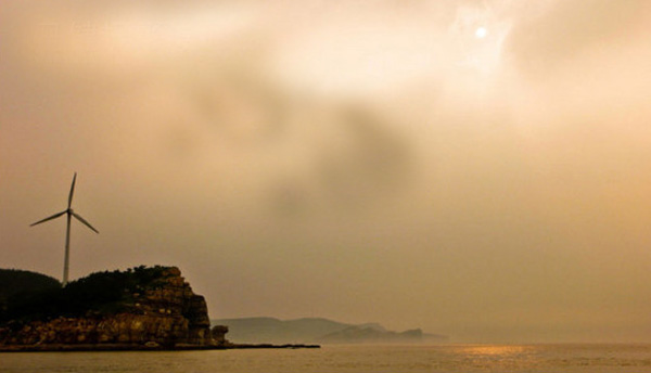 從寶塔礁的另外一側(cè),可以看到相鄰的一個(gè)小島上轉(zhuǎn)動(dòng)的風(fēng)機(jī),以及遠(yuǎn)處海面上鉆出云層的太陽在海上的耀眼光斑!大海呈現(xiàn)了它魅惑的一面!
