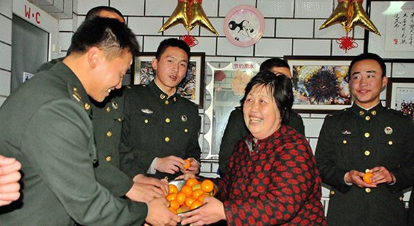 部隊(duì)官兵與“長島老娘”劉淑云在一起