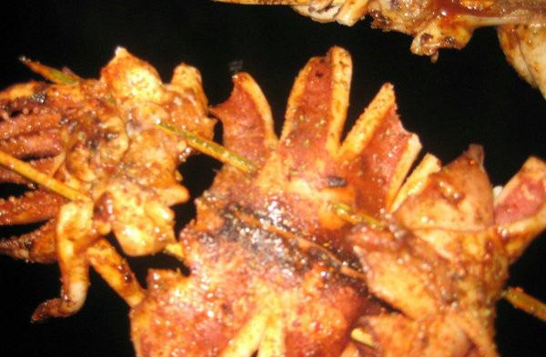 晚上在夜市燒烤的魷魚。很大只、很肥厚、很鮮美,(足比成人手掌大,嘿嘿)