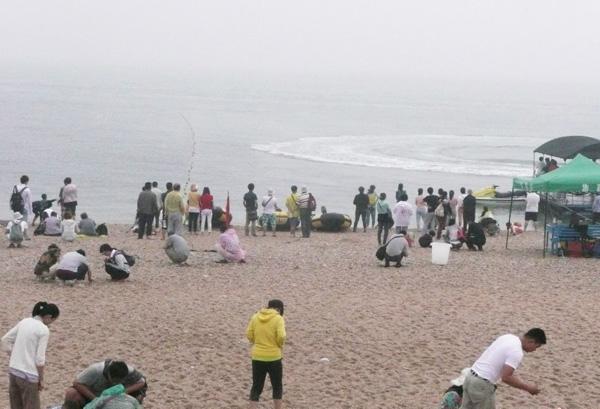 長(zhǎng)島的海灘比比皆是,最美的還數(shù)月牙灣的海灘。月牙灣又稱半月灣,沿著2000米的月牙長(zhǎng)灘而建,看起來形狀極像一鉤初升的彎月。堤上立著一塊彎月形的石頭,石的兩面皆刻有“月牙灣公園”五個(gè)秀氣的大字,是著名書法家武中奇先生題寫的。我們先到海豹苑欣賞了一會(huì)海豹精彩的表演,然后走下海堤,腳下就是長(zhǎng)島最著名的半月灣鵝卵石海灘了。漫步沙灘上,看到了一些潔白如美玉、晶瑩賽琥珀的球石。簡(jiǎn)直是一個(gè)晶瑩剔透的球石世界。月牙灣的球石從何而來呢?傳說是因?yàn)樘焐舷膳囊淮渲轫?xiàng)鏈掉在了長(zhǎng)島,所以這片海域就有了這些圓潤(rùn)的石頭,像一粒粒閃光的珍珠。宋代文學(xué)家蘇東坡對(duì)長(zhǎng)島美石情有獨(dú)鐘,留下了“我攜此石歸,袖中有東海。置之盆盎中,日與山海對(duì)”的詩句,并題《北海十二石記》,對(duì)月牙灣球石贊賞有加 :“五彩斑斕或作金色,皆秀色粲然……”游完月牙灣回到漁家,匆匆地吃了午飯,又匆匆地坐上輪船駛離長(zhǎng)島。成群的海鷗繞船盤旋飛舞,像在為我們送行。