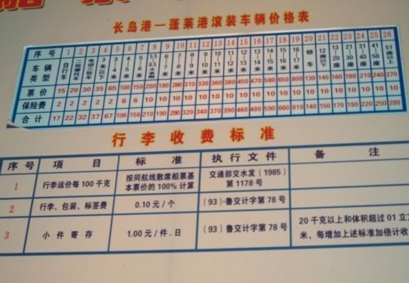 近四個小時的路上顛簸(大家可以理解,路上有時會比較堵),我們趕到蓬萊碼頭,購票,上船。家用小轎車單程擺渡費140元,乘客每位30元。