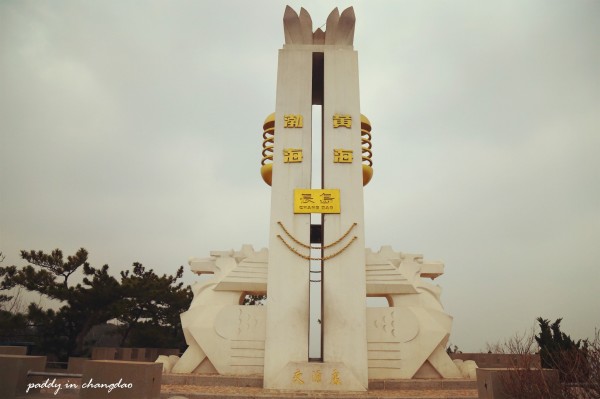 這里就是渤海、黃海的分界線了,高大的標(biāo)致建筑,指向遠(yuǎn)方的分界線,只是那天天氣不佳,大海上霧茫茫,無(wú)法清晰的看到。