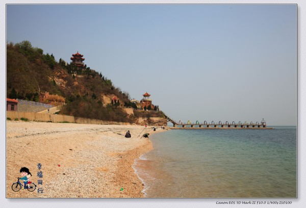 在長(zhǎng)島看黃渤海的分界線,要比蓬萊閣清晰得多,是真正的分界線??磮D的人影知道了,人是可以走到海邊的哦。