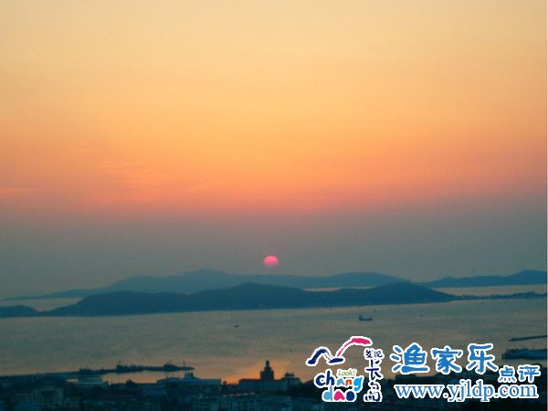 繼續(xù)趕路,我們要在“旌表”處看日落,到了“旌表”才發(fā)現(xiàn),這里是地勢最高處,所以是看日落的好地方。我猜想可能是因?yàn)殚L島臨海,水霧比較大,所以它日落的霞光無法散射到很遠(yuǎn),無法暈染紅周邊的云彩,因而它的日落是非常的嫻靜,只有一輪被云彩隱隱遮住的紅日,緩緩地沉靜地落向大海??次遗牡娜章?,有點(diǎn)意境吧。