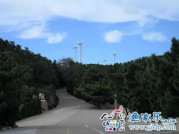山頂這里就是另一個(gè)景區(qū)——林海。書(shū)上說(shuō):林海依山就勢(shì),憑海矗立,是一處清新、幽靜、帶有浪漫色彩的地方。為長(zhǎng)島國(guó)家級(jí)自然保護(hù)區(qū)、國(guó)家森林公園的主體 部分。綿延起伏的山脈上豎起好多風(fēng)力發(fā)電車,構(gòu)成一道靚麗的風(fēng)景線。這里以黃渤海交匯處聞名遐邇,又因負(fù)氧離子含量高被稱為“天然氧吧”,是不可多得的療 養(yǎng)勝地。正是“林海空氣聞一聞,未游人已醉三分”
