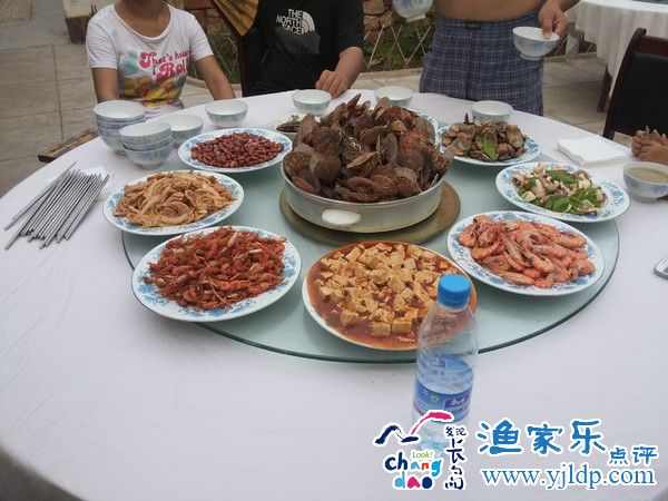 午飯來到已經(jīng)交了押金的指定參觀,這是一個(gè)二層的小樓,無論是包間還是平臺(tái),已經(jīng)擠滿了用餐的游客。不知道是不是都和我們一樣被挾持而來?好容易找了個(gè)有空調(diào)的包間先涼快涼快,男士們出去點(diǎn)餐?;貋砗笞郎蠑[了幾碟小菜,色香味都談不上,是什么也不太記得了。我們此頓的主菜是魚,據(jù)說是自己釣的野生海魚。120一斤,我們點(diǎn)了大約8斤的分量,這價(jià)格令人咂舌,這魚就更令人向往,一行老小舉著筷子,伸著脖子,望眼欲穿,不大一會(huì)兒,端上一盆 貌似是魚的東西,事后發(fā)現(xiàn)好像魚已經(jīng)面目全非,似乎只能看見好幾個(gè)魚頭,見量并不大,我看看這一桌子的人,弱弱的問服務(wù)員:“還有嗎?”“有!”哦,這我才放了心,大家一齊動(dòng)筷,男士讓著女士,女士讓著孩子,謙讓了幾分鐘后,眼看著魚就要沒了,那個(gè)服務(wù)員終于來了,端來了一小盤蛤蜊,原來,這就是她的“有”。也就是說,我們的千元大魚就已經(jīng)被我們消滅了?大家面面相覷,終于明白,被宰了!好在大家有良好的心態(tài),在夸獎(jiǎng)了魚的美味之后,老公帶頭把魚湯給喝了,不住稱贊美味,會(huì)計(jì)不愧是會(huì)計(jì),要求我們把魚頭魚刺都嚼掉,唉,盡管我們也很舍不得扔掉,但是這點(diǎn)還是很難做到。菜沒了,米飯也算了吧,發(fā)現(xiàn)大饅頭還不錯(cuò),于是老公親自動(dòng)手,去后廚把剩余的幾個(gè)饅頭都給抄來了,大家分吃,蘸著魚湯和菜湯,其樂也融融。后來卻為沒能給這千元大魚留影而深深遺憾,估計(jì)能夠遺憾終身。嶗山的老道們,你們天天就眼巴巴看著???