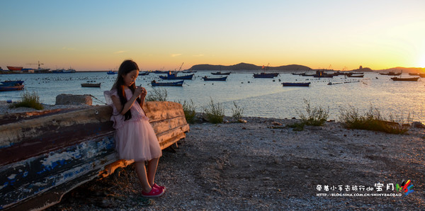 我心里還惦記著早晨看到的漁港,只是那時的光線太硬,并不適合拍照,于是傍晚時分新繹旅游又特意安排車帶我們過去。漁港附近的沙灘幾乎可以和月牙灣媲美,卻沒有月牙灣的游客,只有三三兩兩的本地青年在散步,發(fā)呆。眼前的大海、天空和漁船都沐浴在一片金色的光輝里,整個世界溫柔而寧靜,小月在海邊走來走去撿拾著她愛的球石,我站在遠處,紀錄下這個唯美的畫面。感謝臺風讓我們在島上多留了一晚,讓我們在這個黃昏邂逅如此令人驚艷的長島。
