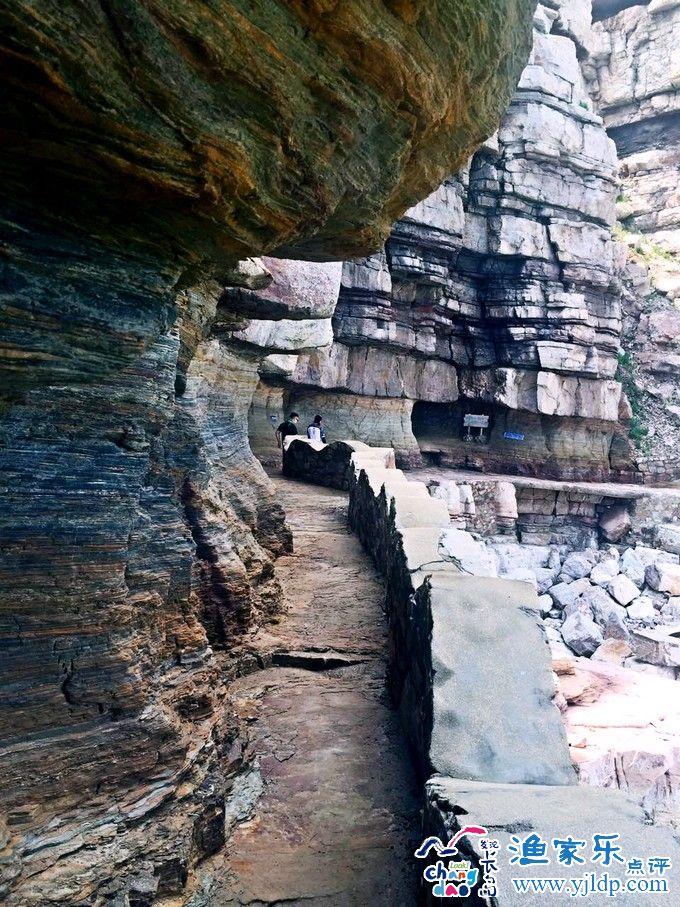 龍爪山,位于大黑山的北端,由六座高峻險峭的絕壁、五條溝壑縱橫的崖谷組成,其懸崖斷壁群延綿一千余米于海上,構(gòu)成山勢險雄,巨石玄妙,礁洞幽幻的奇異景觀。西側(cè)有國內(nèi)最長的海蝕洞——聚仙洞,洞深83米,寬4米,高20余米,傳說是八仙過海時的聚會之處。在北端的海蝕崖上有一條長約1.5公里,高約3米,寬1米不等的宛如一條蜿蜒曲折的古棧道的海蝕棧道,凹嵌在懸崖陡壁之上,整個棧道集雄奇美、裸露美、神秘美于一身,信步棧道之上,如游走在天街,居高臨下,觀海聽濤,會感觸到大自然原始氣息。