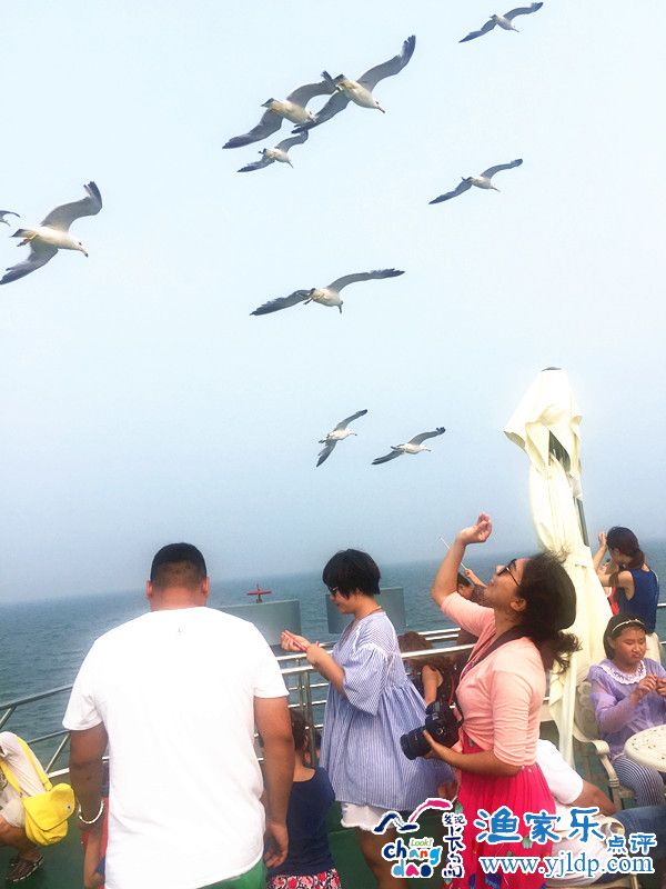 從小就唱著“”海鷗海鷗,我們的朋友“”長大,從來沒有近距離接觸過海鷗,所以這次來長島,早早就計劃了這次萬鳥島游覽。全程游覽大約3個半小時,一路上會欣賞很多不同的小島,船上都有相應(yīng)的介紹,最有意思的是近距離地接觸海鷗,看著成群的海鷗就在頭頂滑行,那感覺真的非常壯觀。臨出發(fā)前,漁家樂的主人給我們帶了一些方便面說可以喂海鷗,但是上船后才發(fā)現(xiàn)現(xiàn)在禁止方便面喂食了,都需要買火腿腸,10塊錢4根。我們買了去三樓的票,吹著海風,喂著海鷗,仿佛找回了童年的感覺。