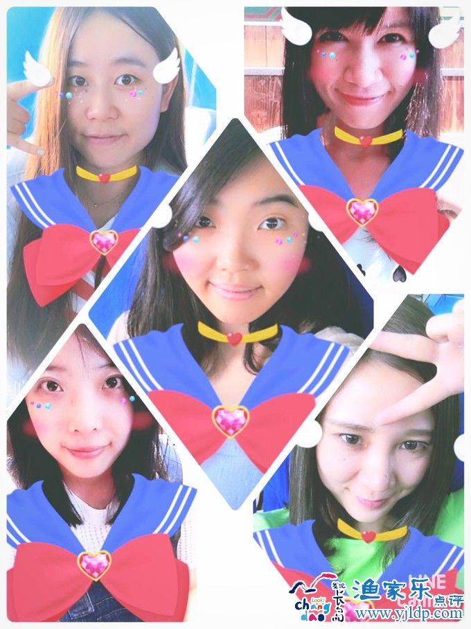 在船上玩起了最近流行的faceU,和另外兩只缺席的美少女來了個合體。