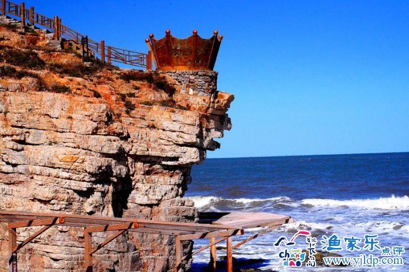 這個(gè)景點(diǎn)離長(zhǎng)島縣城很遠(yuǎn),但車程也不過(guò)只有20多分鐘,進(jìn)入景點(diǎn)其實(shí)并沒(méi)有很特別,看到海岸線后往左是一段木棧道,遠(yuǎn)處能見(jiàn)一個(gè)銅筑的“皇冠”,類似觀景臺(tái),但是出于安全考慮,目前無(wú)法到達(dá)。步行到小山腰處便是九丈崖的石碑,往前有個(gè)觀景平臺(tái),可賞鷗翅灣風(fēng)景。