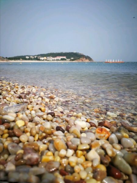 月牙灣海灘除了是天然的海水浴場外,還是全國罕見的礫石灘,到處是色彩斑斕的球石。“潔白似脂玉,晶瑩賽琥珀”,啟功為此賦詩一首:“一彎新月印灘涂,水碧山青舉世無。仙境不需求物外,游人步步踏明珠。”