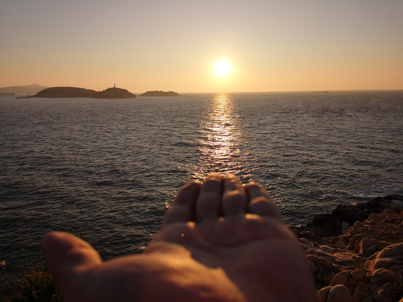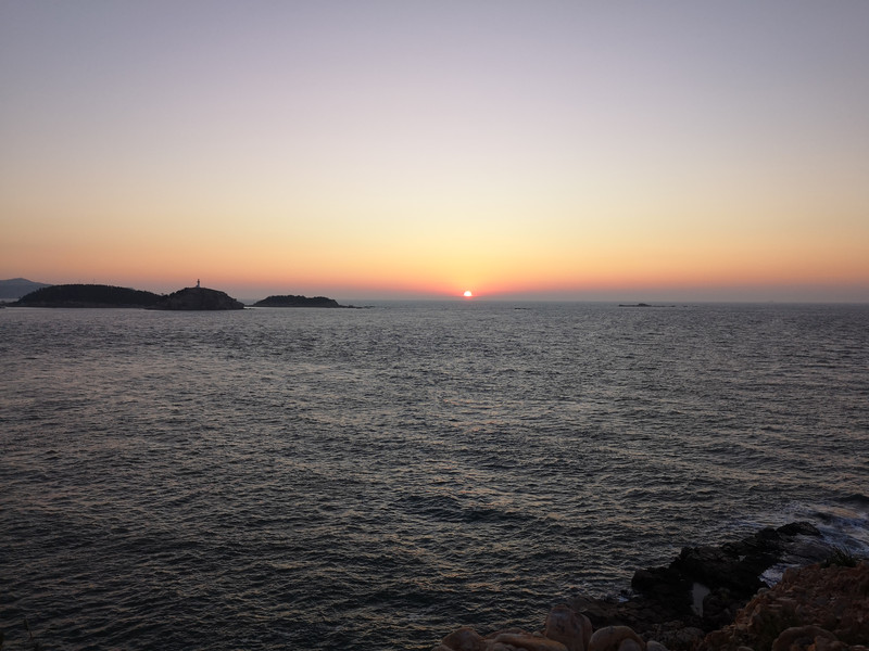 隨著時(shí)間一分一秒的過(guò)去,白天的光線(xiàn)逐漸變暗,太陽(yáng)公公也慢慢變成紅色,又大又圓,整個(gè)海面被夕陽(yáng)籠罩,逐漸變成了一片金黃,太陽(yáng)越來(lái)越低,越來(lái)越低,直至退到云層以下,完全消失在眾人視野里,大家紛紛按動(dòng)相機(jī)快門(mén),把這絕色美景記錄下來(lái)。原來(lái),當(dāng)落日余暉遇上無(wú)邊大海,才是真正的美出天際!