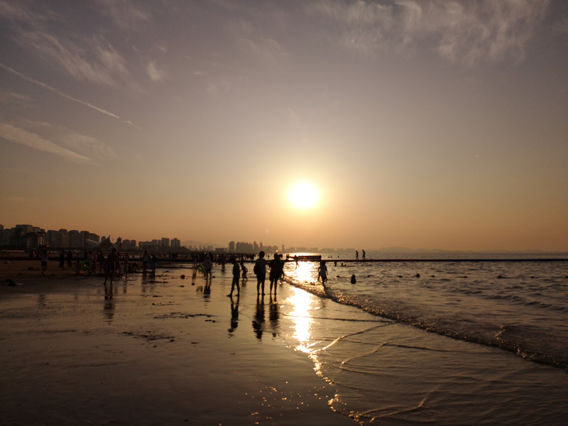 傍晚時(shí)分,夕陽(yáng)西下,落日余暉把海岸線(xiàn)裝扮得異常靚麗,人在其中悠然漫步,或站立,或低頭,或彎腰,宛若一幅綺麗畫(huà)卷。