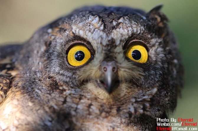 “東方角鸮”,小型猛禽,相貌十分符合公眾對貓頭鷹的形象,圓臉龐,大眼睛,還有一雙直立的“耳朵”。它有兩種姿態(tài),保護極好,他的羽毛的色彩和裂紋的質(zhì)感都很好的模擬了樹皮。如果它不動,你很難發(fā)現(xiàn)它的存在。東方角鸮是候鳥,秋冬季南遷到東南亞越冬。主要捕食大型昆蟲和小型嚙齒類動物。