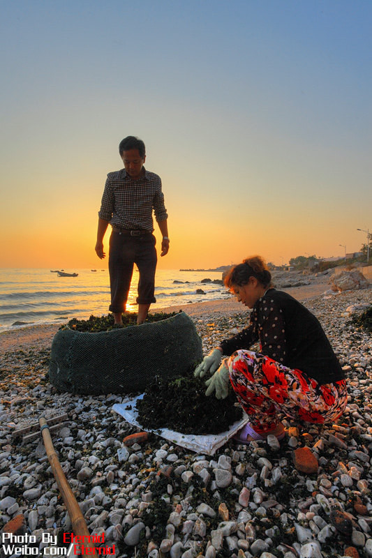 辛勤勞作的漁民,他們晾曬海邊的海菜(裙帶菜),晾干后成批賣到城里。我和他們交流,他們已經(jīng)幾代人在島上生活,世代打漁為生,他們喜歡這里的生活。最終他們同意讓我進行拍攝,很平和的一家漁民。這也是大黑山島人給我的普遍感受:親切、平和、不市儈,并沒有像我推銷什么,而只是靜靜和我聊天。
