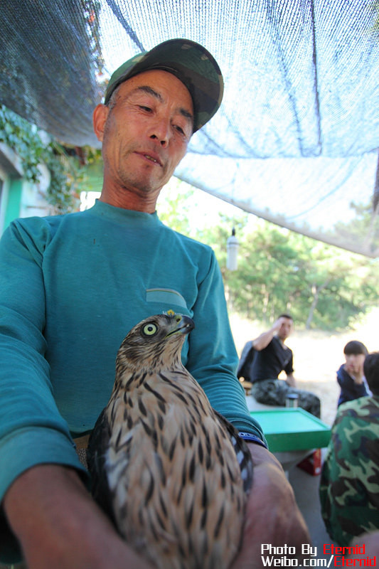 每年秋季大黑山島都成為猛禽南遷的重要中繼站。從西伯利亞和中國東北南遷的猛禽從遼東半島入海,向南跨越渤海海峽,南北排列的長山列島成為他們落腳的中繼站,大黑山島是最接近山東半島的島嶼之一,生態(tài)環(huán)境適宜,人類活動相對其他島嶼較少,很多猛禽選擇大黑山島作為登陸前最后的修整地。因此,大黑山島被列為長島鳥類國家級自然保護區(qū)的核心區(qū),同時也是長島鳥類環(huán)志站的重要工組站點,每年在這里環(huán)志的猛禽數(shù)量約占中國猛禽環(huán)志數(shù)量的80%。我們此行也游行看到了島上環(huán)志站的日常工作。猛禽遷徙期間,環(huán)志工作量巨大,每日的工作都非常辛苦,在此對在當(dāng)?shù)毓ぷ魅藛T表示敬意。