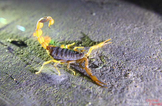 “東亞鉗蝎”,我國北方最常見的蝎子,夜里也是這家伙出來覓食的時間。別小看它,這家伙毒性不弱,甚至比南方某些雨林蝎的毒性還要強。所以最好敬而遠(yuǎn)之。