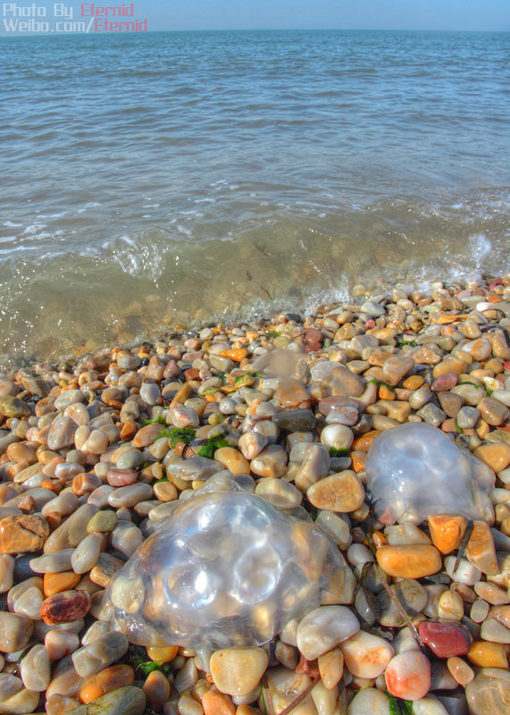 海灘上到處可見已經(jīng)死掉的水母,如果是活的,還是不要碰為好,被蜇傷也是件蠻麻煩的事情。
