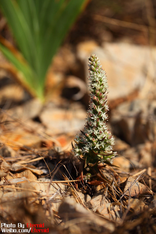 10月,北方普遍已經(jīng)進入秋季,我們找遍了大黑山島的山坡,期待著能發(fā)現(xiàn)幾種秋天的野花,實在已是深秋,唯有“狼牙瓦松”尚在綻放,這也略微安撫了我在黑山尋花的愿望。北京也有瓦松,而且有2種,這里只有一種“狼牙瓦松”,在山坡上成片開放,也很是美麗。