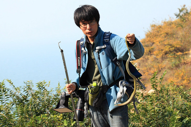 大黑山島由于其特殊的地理環(huán)境,島上擁有特有種蝮蛇“廟島蝮”,且數(shù)量極大,有中國第二蛇島之稱。我們此行的主要目的就是拍攝“廟島蝮”,但由于此行季節(jié)不對,時間去的太晚,并沒有如期遇到“廟島蝮”,而是遇到了已經(jīng)偶遇過數(shù)次的“虎斑頸槽蛇”,小蛇對我的拍攝比較配合,可能由于溫度原因,并沒有太多的亂跑亂竄,順利幫助我完成了幾個姿態(tài)的拍攝,兩張靚圖完美詮釋它的姿態(tài)。拍攝后我們將其放生,看著它爬遠(yuǎn)后才放心離去。