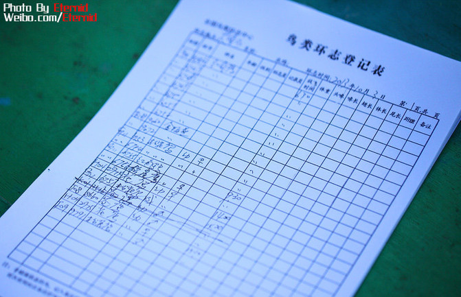 我們親眼見到的環(huán)志的工作量是極大的,尤其在這里的鳥類遷徙期間內(nèi),每天都要給數(shù)百只鳥進行環(huán)志和登記工作,工作人員每天都從天量忙到天黑,這種工作要持續(xù)1個月之久。