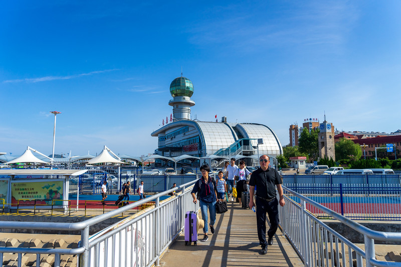 返程時(shí)買的船票是豪華客船,票價(jià)比普通客船略高,當(dāng)然待遇也提升了。來時(shí)室外的硬邦邦冰冰涼的椅子,換成了裝飾考究的船艙內(nèi)的皮沙發(fā)。整艘船在行駛中也更加的穩(wěn)當(dāng),速度也略快。正玩兒著手機(jī),被朋友提醒“到了”,我才回過神來,匆匆去提行李箱。