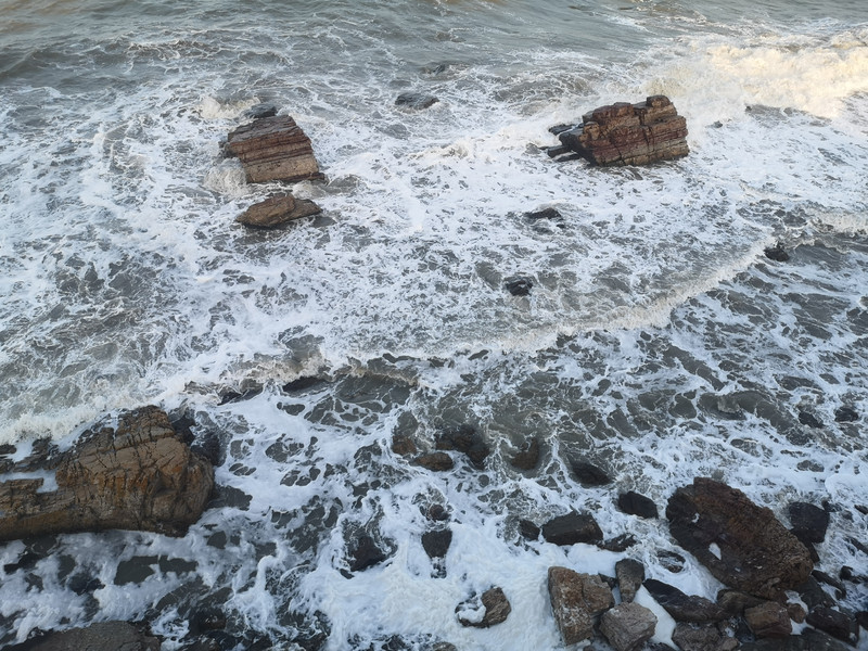 還沒(méi)走到海灘已聽(tīng)到風(fēng)的呼嘯與海的咆哮,不禁令人心潮澎湃。待走到海灘,發(fā)現(xiàn)的竟是與南島截然不同的海!浪花涌起,拍打海岸,泡沫直沖腳底。遠(yuǎn)處聲勢(shì)頗大,近人時(shí)已然十分溫柔。夏季時(shí)這兒還是供人游泳平靜之海,到深秋已盡顯出它的野性!