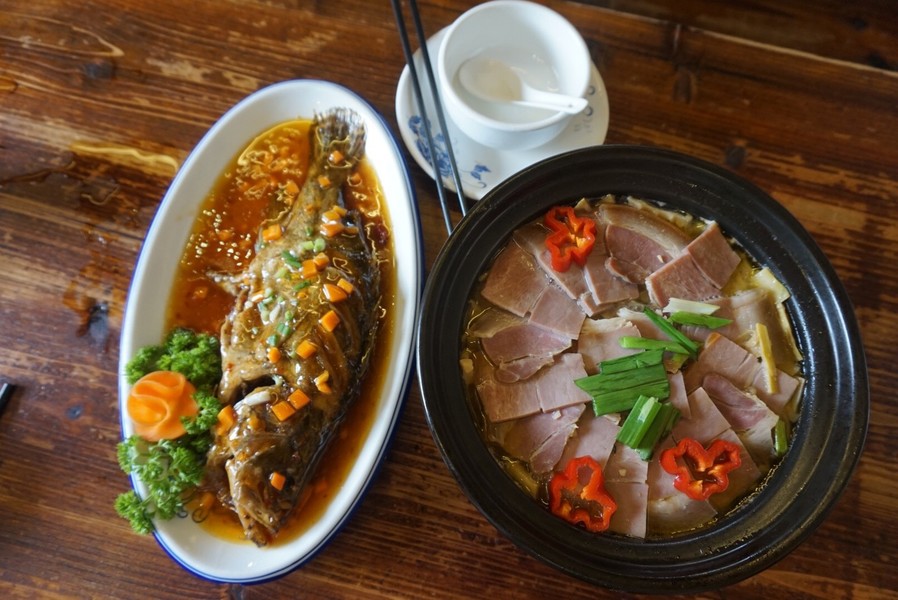 客棧原先是清末官宦民居,宅內(nèi)雕花古樓遍布,掛著燈籠紙傘,還有一座水榭花園,氣派非凡,被譽(yù)為“中國十大情調(diào)客?!敝弧3俗∷蕲h(huán)境好,餐飲也很具有當(dāng)?shù)靥厣?/p>