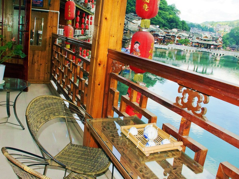 客棧位于鳳凰古城內(nèi)回龍閣、風橋橋頭,是一棟4層特色臨江吊腳樓,擁有獨立陽臺、舒適吊籃,清新格調(diào),設施齊全??蜅?nèi)既能享受沱江美麗夜景,又能免于酒吧人流的喧囂,環(huán)境非常好。