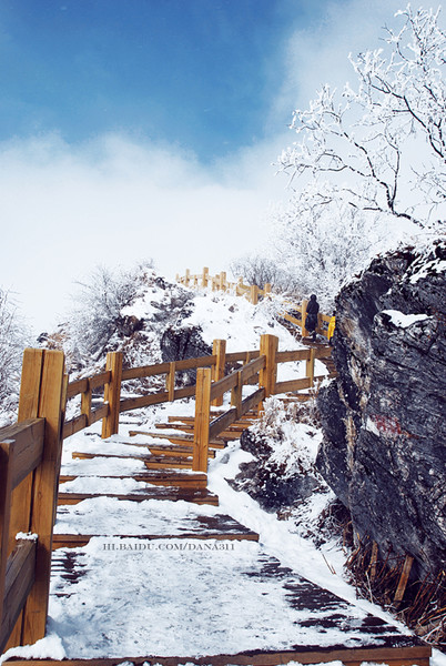 前山景致沒有后山有特點,后山有漂亮的滑雪場(冬季)和滑草場(夏季),可以從滑道邊的維護步行道爬上日月坪,還可乘索道很容易地上到山頂日月坪。從步行道直接爬上日月坪耗時2.5-5小時,從這里爬山,耗時短,即不用坐纜車,也不用走很遠的路。
