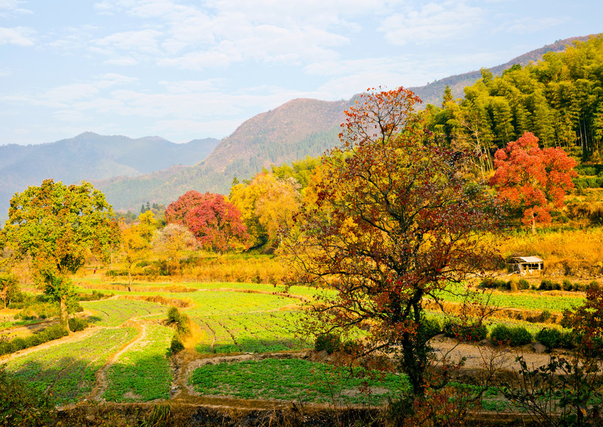 如果說宏村是一座“畫中的村莊”,那么,塔川一定是“上帝筆下的秋色”。塔川,又名塔上,位于黟縣桃花源,距離宏村只有半個小時的步行距離,是眾多美麗富饒的自然村落中又一個獨具魅力的山間村落。
