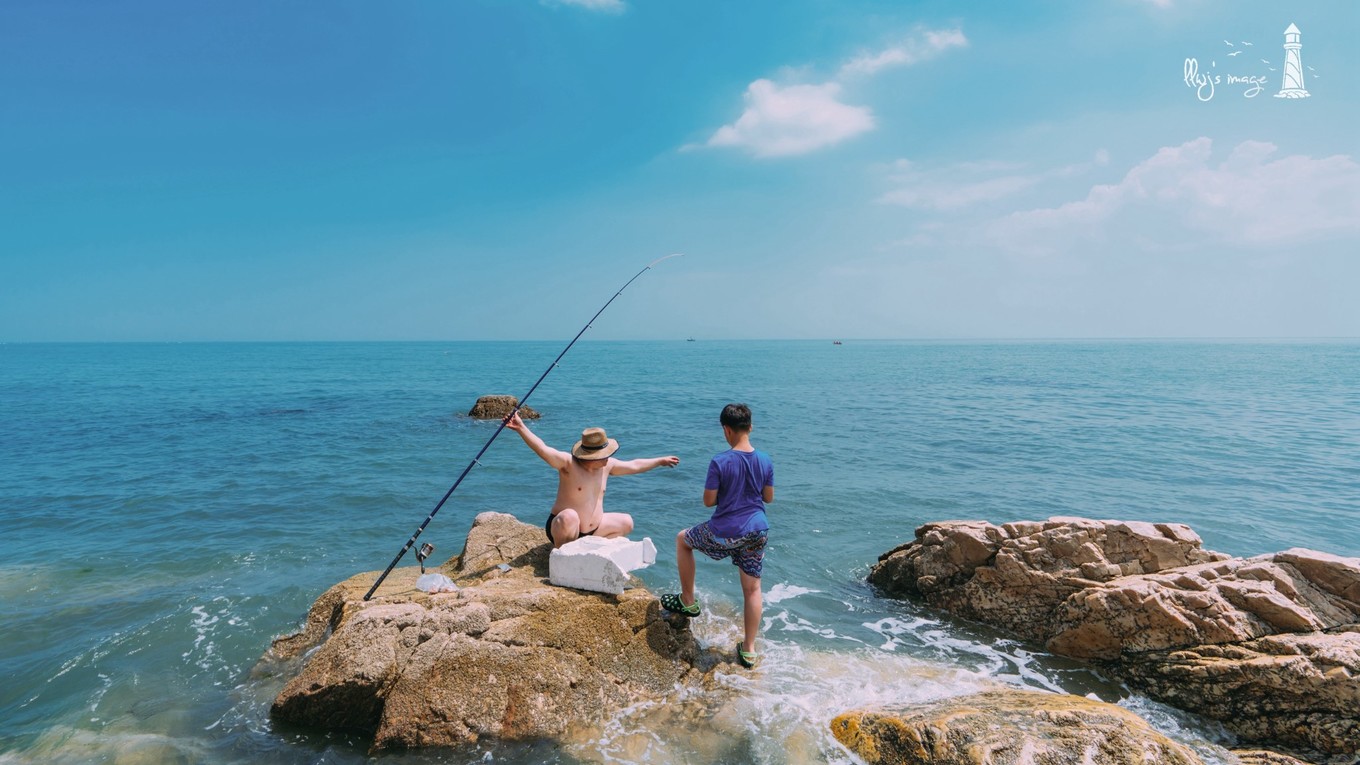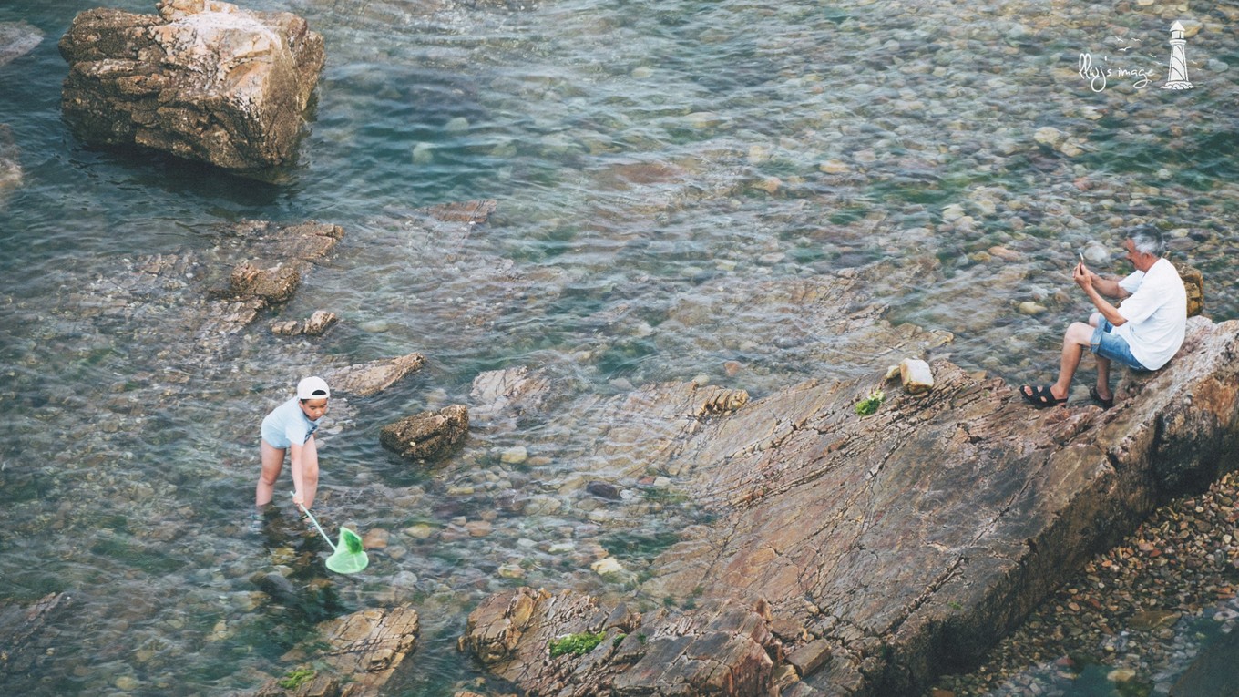 一位父親和兒子在礁石上垂釣,眼見有魚上鉤,卻被他輕輕摘下擲回海里。臨走時回望他孤礁獨釣的背影,莫名覺得有幾分灑脫。
