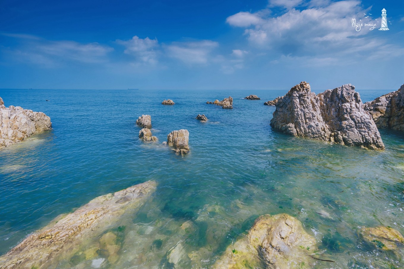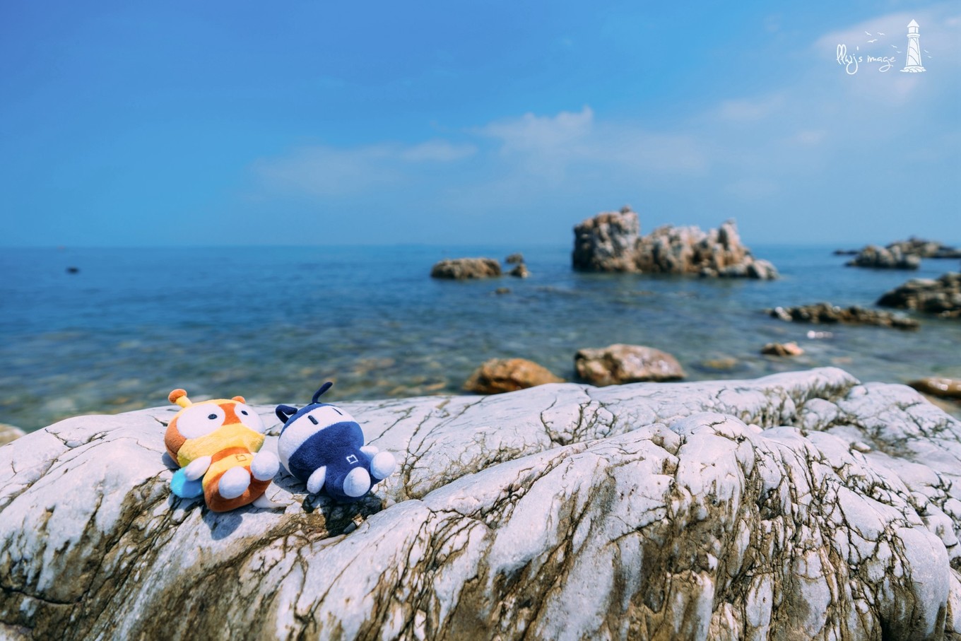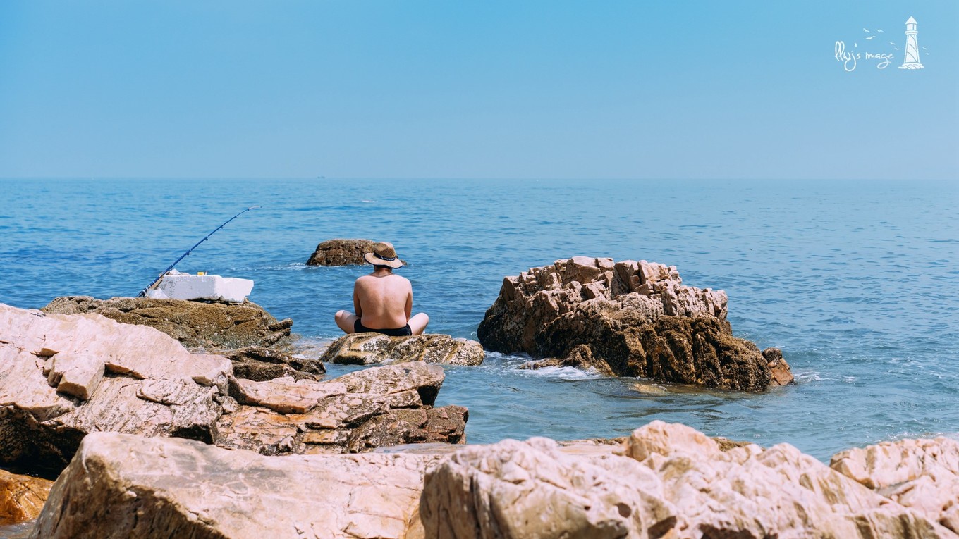四周清凈極了,耳朵里只有潮水的陣陣涌動和遠處海鷗的輕聲鳴叫。蒸騰而起的水汽讓一切籠罩進迷幻當中,碧海藍天,潮聲陣陣,眼前就要幻化出一位東邪黃藥師,衣炔飄飄立于礁石之上,吹一曲碧海潮生。