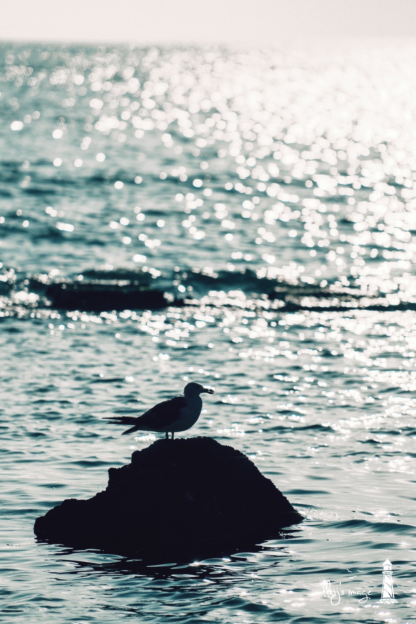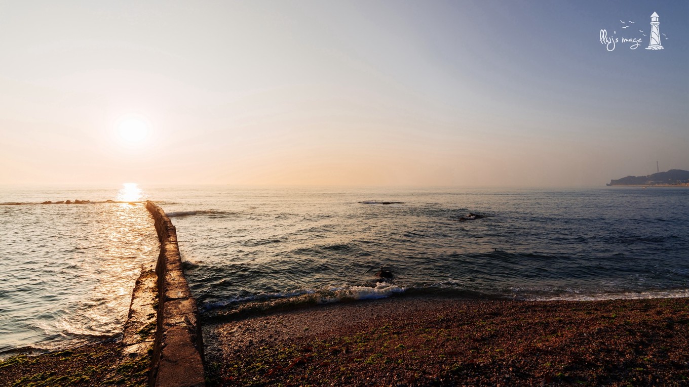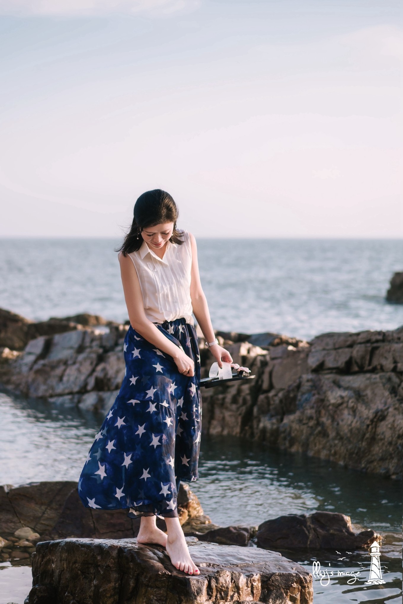四周清凈極了,耳朵里只有潮水的陣陣涌動和遠處海鷗的輕聲鳴叫。蒸騰而起的水汽讓一切籠罩進迷幻當中,碧海藍天,潮聲陣陣,眼前就要幻化出一位東邪黃藥師,衣炔飄飄立于礁石之上,吹一曲碧海潮生。