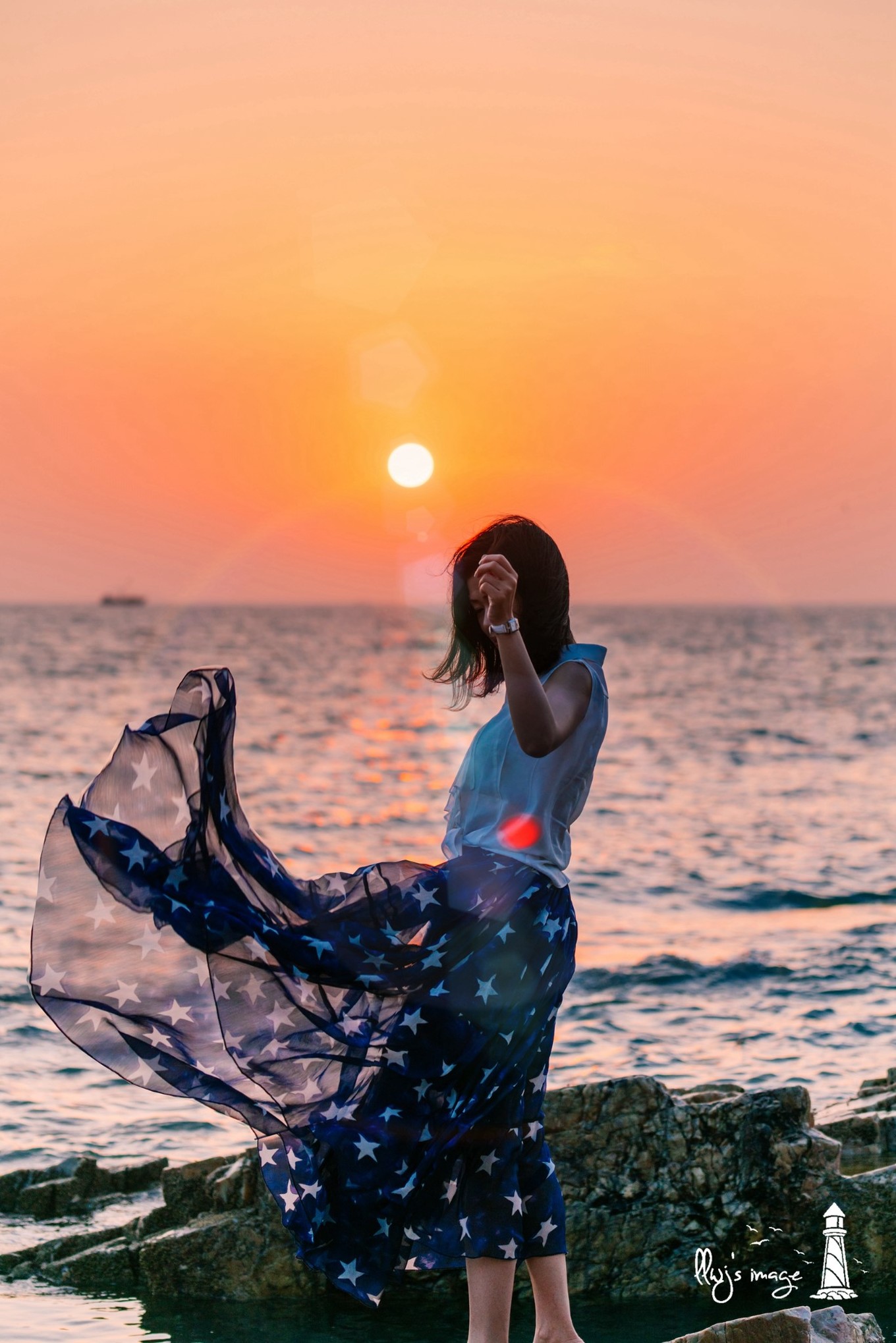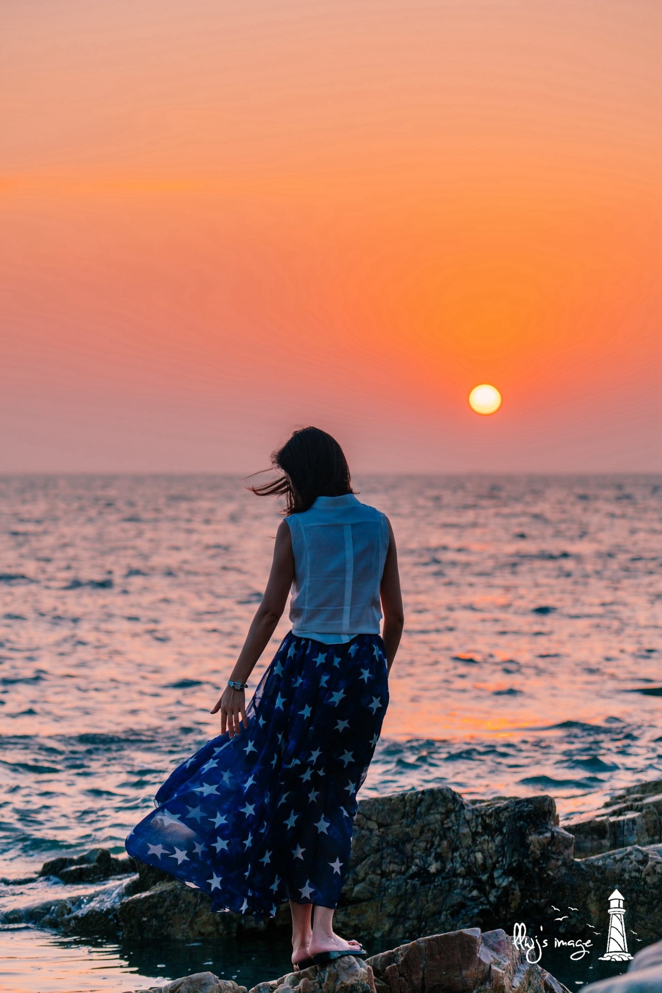 人群紛紛涌向高處,想要占領一個看日落的好位置。落日余暉給空曠的石灘鍍上暖色調,宛若一座海濱劇場。你輕盈地向我走來,礁石上投射出長長的身影。