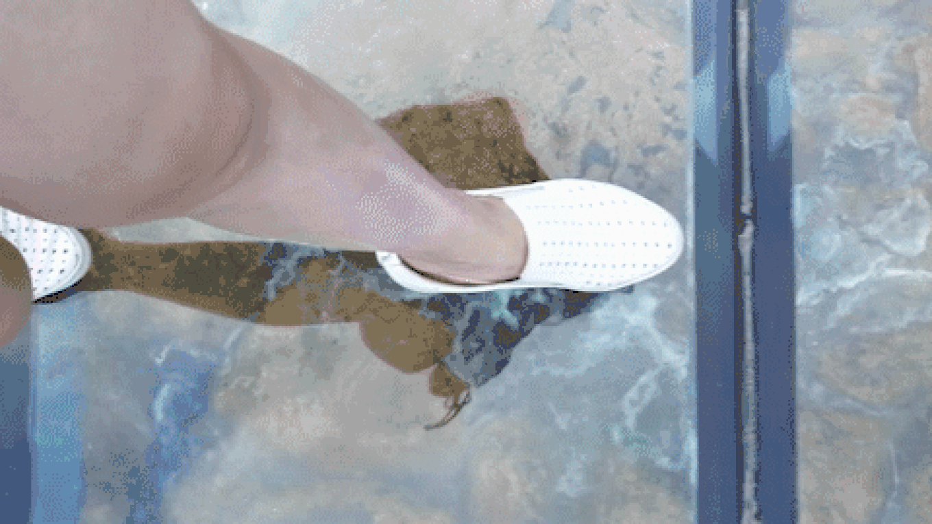 這是很特別的體驗。海水徑直涌動過來,從你的腳底穿過,潔白的小小浪花如精靈一般在巖石間嬉戲。孩子們咯咯笑著呼嘯而過,追逐著地面的自己,幾對情侶手挽著手,低頭駐足,他們甜蜜地把自己的合影倒映在天空里。