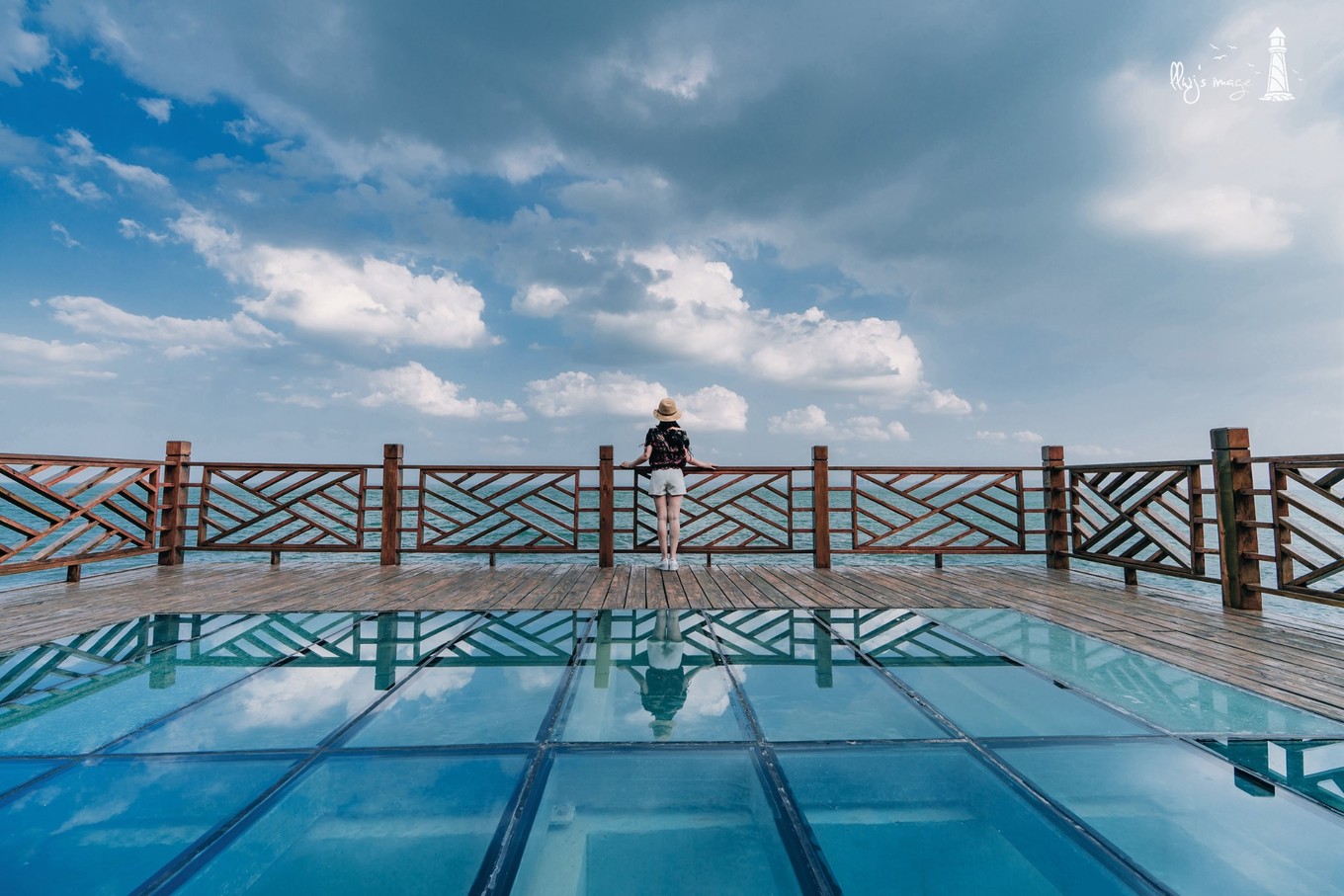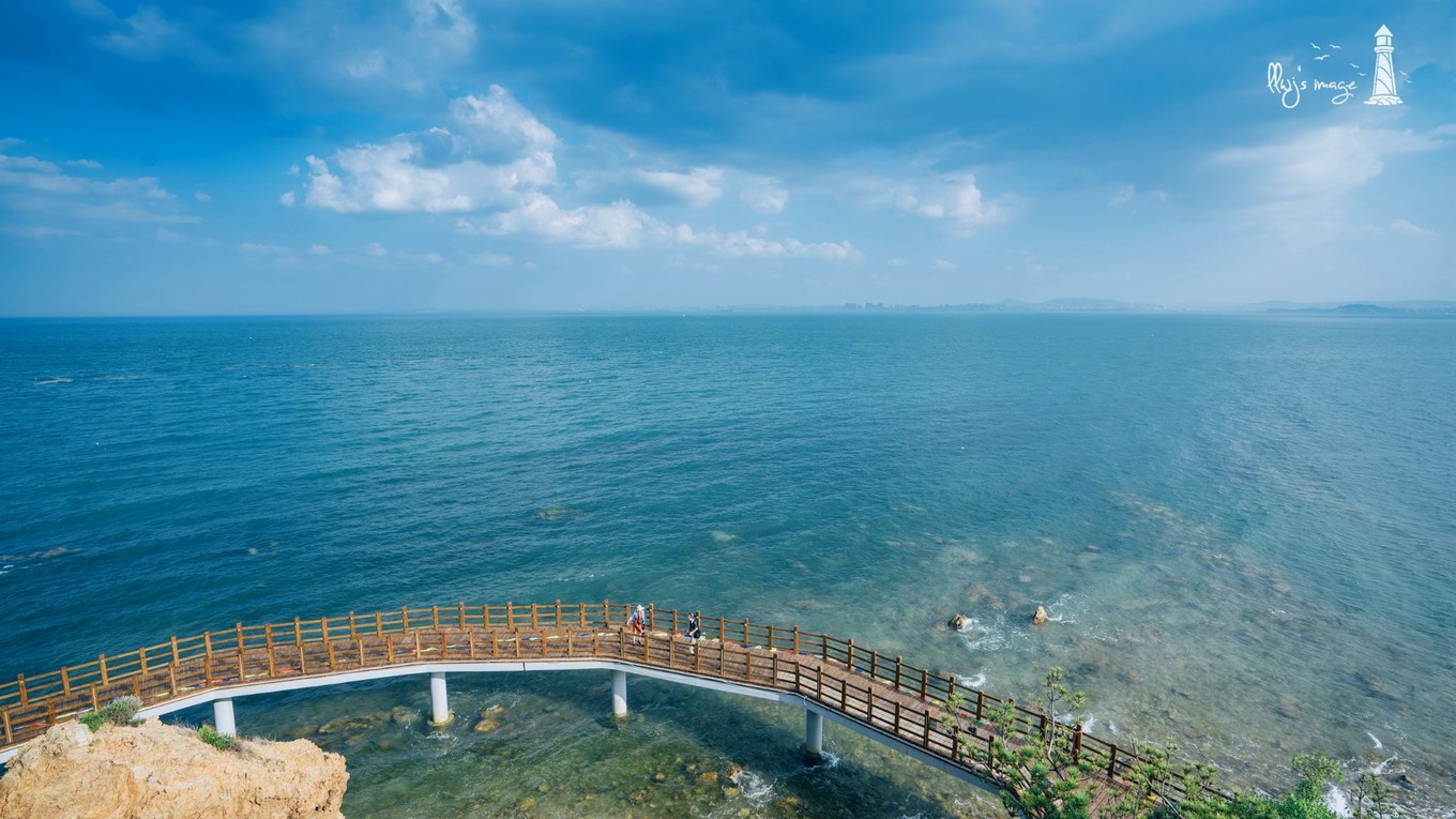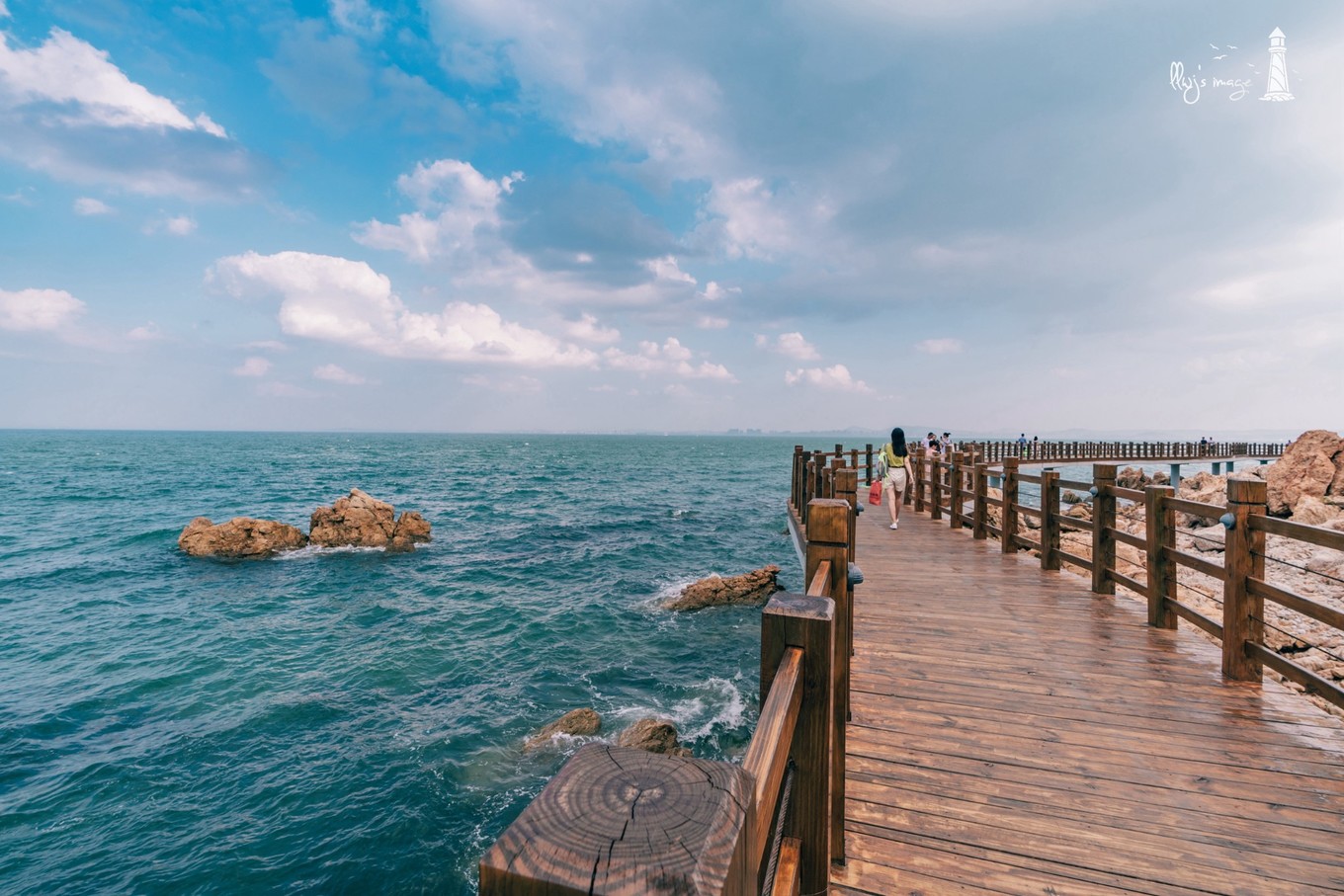 黃昏將近,游人趕在變天之前漸漸散去,斜射的陽光給周圍的一切鍍上柔和的暖光,此刻的海上棧道變成了一座孤獨而豐盈的島嶼。