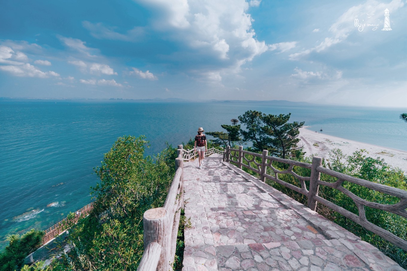 從下午三點樹蔭斑駁的環(huán)海路上走出來,突然聽見走在前面的人“哇”的驚嘆聲,緊接著長山尾就出現(xiàn)在樹林身后。