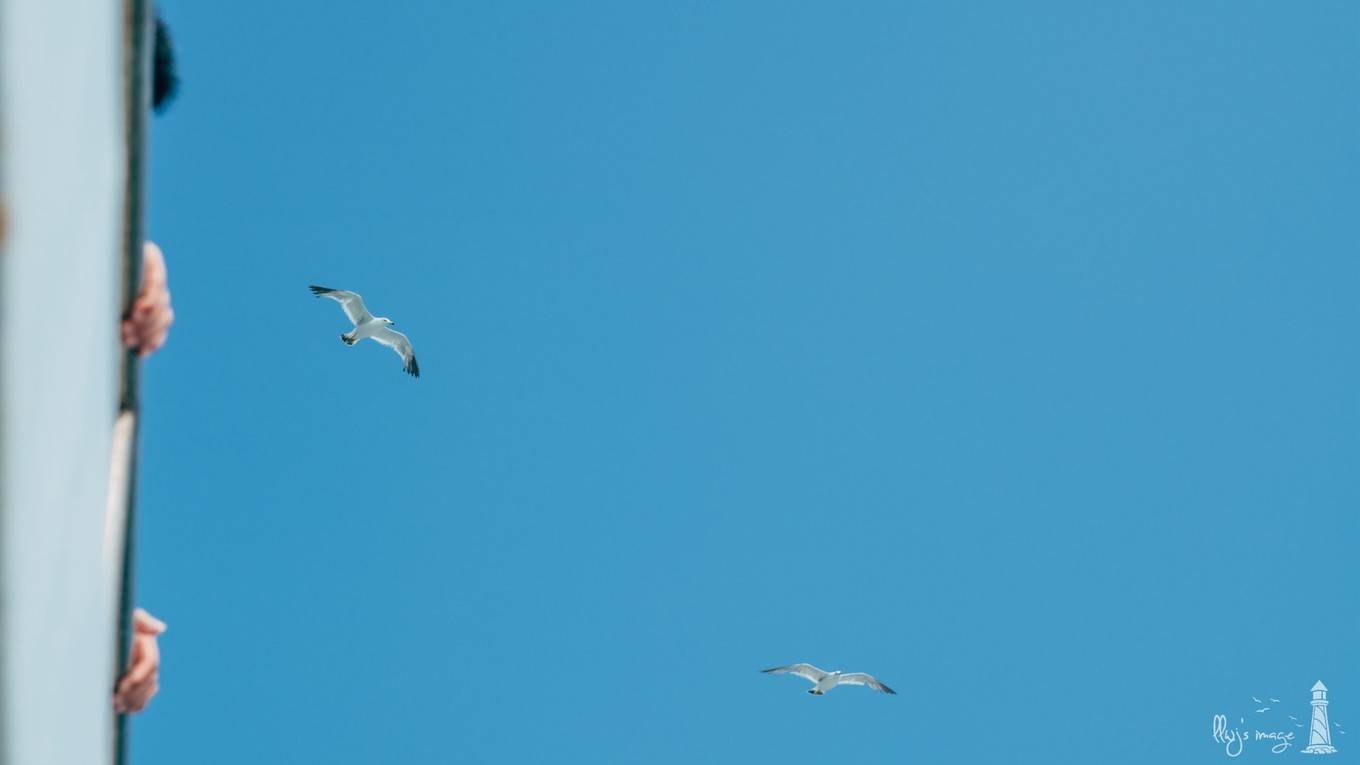 船員在頂層的露臺吹響了哨子,貪吃的海鷗和貪玩的游客便聚集起來。將零食拋到半空,看似閑庭信步的海鷗突然一個俯沖叼走,引起人群的陣陣歡呼。