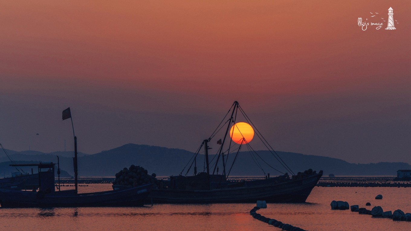 夕陽終于收起刺眼的光線,它散發(fā)著絕對主角的氣場,向著海平面堅定地緩緩下沉,遠山的輪廓仿佛巨輪,在暮色和孤獨中滑入大海。