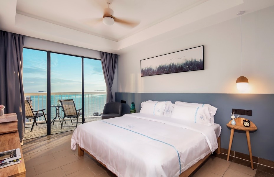 “璽澤”—海上天璽,溫潤(rùn)而澤,步行到海邊只需幾分鐘。海景大床房,莫蘭迪灰搭配低調(diào)內(nèi)斂的藍(lán),拉開(kāi)窗簾,慵懶的陽(yáng)光灑在柔軟的床單上,清新舒適。價(jià)格150-400/晚