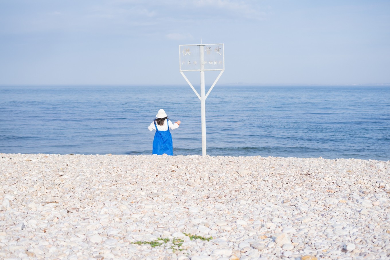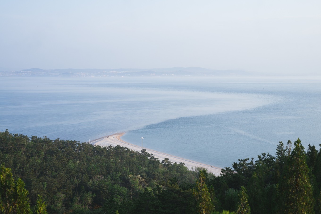 吃完午飯,打車前往月牙灣景區(qū),月牙灣是一個(gè)形似月牙的海水浴場(chǎng),海灘上都是球石,原本沒有太多期待。
