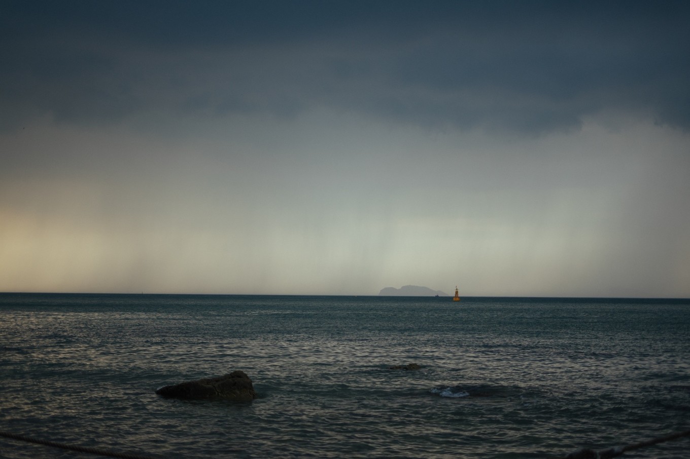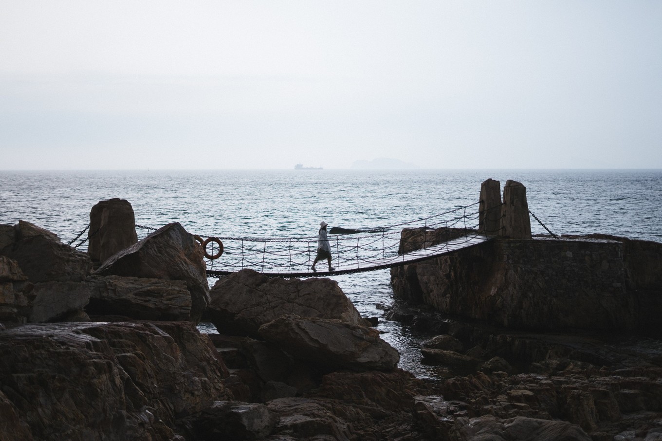 走到九疊石的時(shí)候,突然下起了雨,海邊天然的凸起是我們短暫的避風(fēng)港,再回頭看,竟然一個(gè)人都沒有了,等雨停了,眼前這一幕才告訴你什么叫雨過天晴